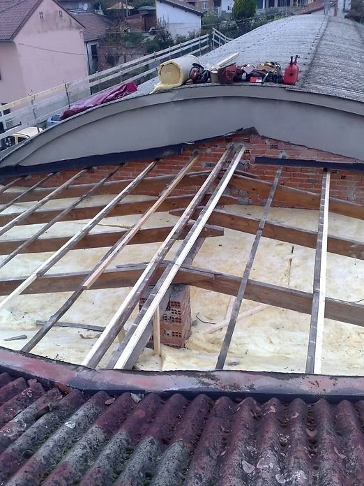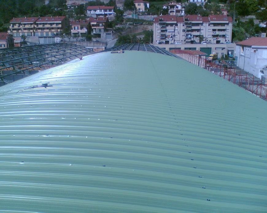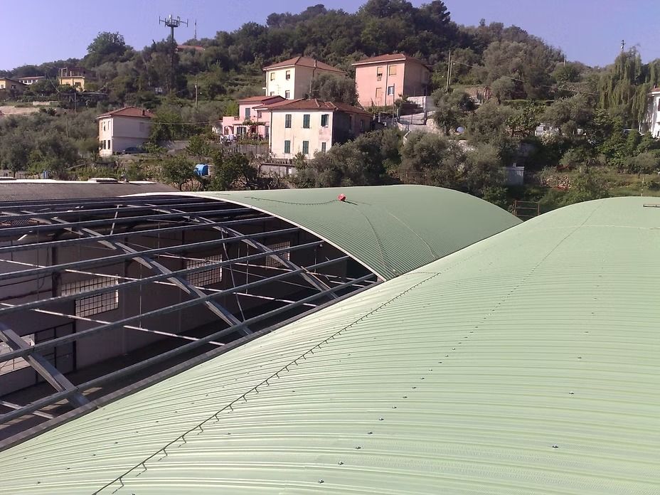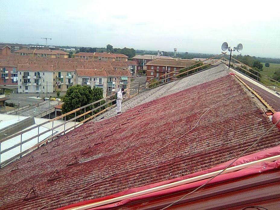 Interventi di rimozione di lastre contenenti amianto tipo Europa e Romana, con successiva posa di nuove coperture in lastre coibentate in doppia lamiera o centinate con poliuretano.